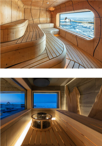 - 側面を全面窓にすることで、サウナ内から景色を堪能できるように